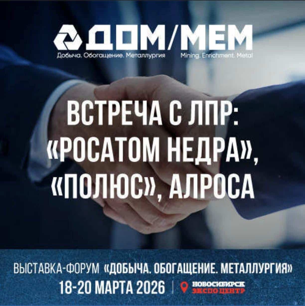 Уважаемые коллеги! Всего через два дня в Новосибирске стартует главное отраслевое событие — Международная коммуникационная площадка «Добыча. Обогащение. Металлургия». Форум пройдет с 18 по 20 марта в новосибирском Экспоцентре.